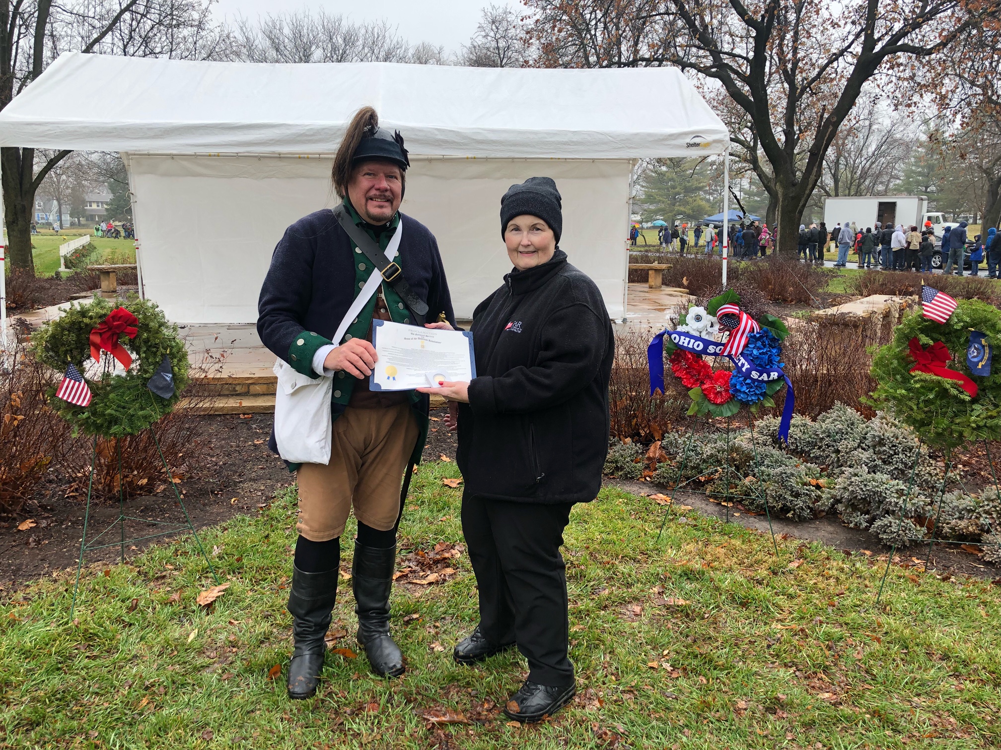 The Cincinnati SAR members were joined by: Members of the Sons of Union Veterans of the Civil War and it’s Auxiliary; three Chapters of the DAR (Clough Valley, Cincinnati and Mariemont); St. Antoninus Cub Scout Pack 614; and others totaling more than 120 people.
